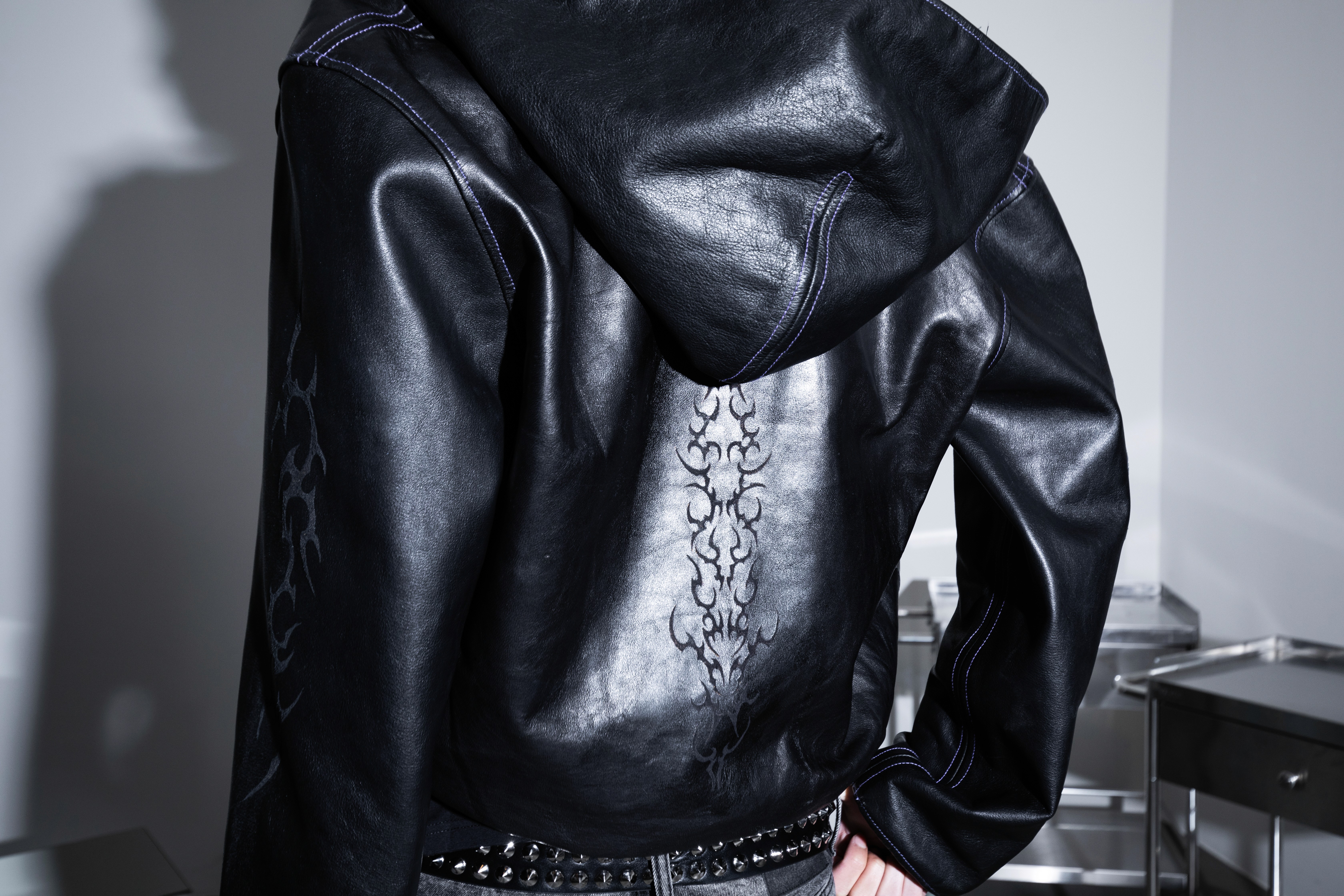 The crown jewel of this collaboration was a one-of-a-kind leather jacket, hand-tattooed by our artist Mary (maryrain.tattoo). Sold at €1,000, this piece bridged the gap between wearable high fashion and permanent art. It served as the central anchor of the collection, embodying the craftsmanship and "Mommy I’m Sorry" DNA in every needle stroke.